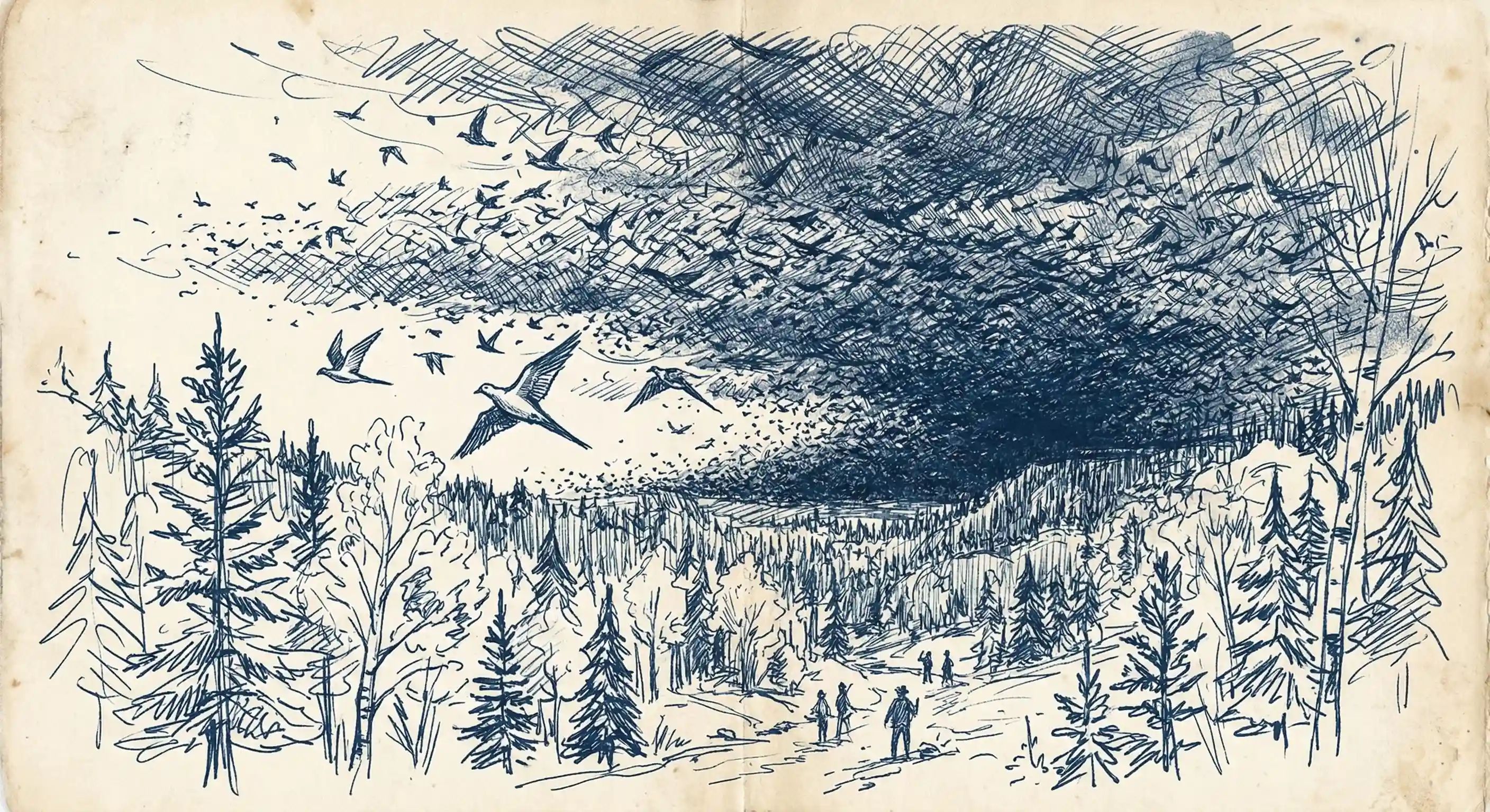 Flocks a mile wide and 300 miles long. Taking hours to pass overhead. So many birds landing in trees that branches snapped. The sound of wings like a tornado.
